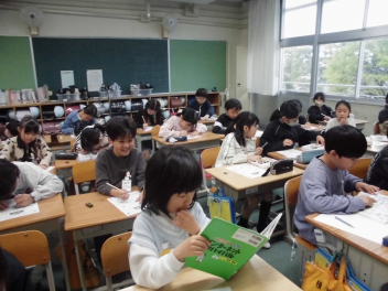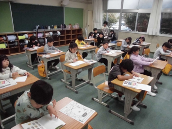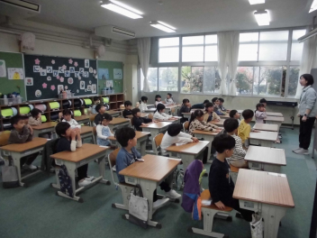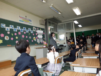 始業式後の学級を覗いてみました。新しい教科書をもらって、興味深そうに内容を確認している様子や、学年集会を行っている様子が見られました。