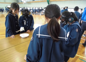 10月23日、4年生が総合的な学習の時間に福祉体験活動を行いました。