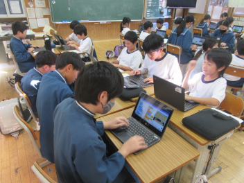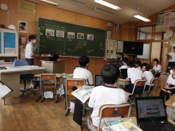 国語の授業の様子です。この時間では「ごんぎつね」の学習を行いました。これからの授業で考えていきたい問いについて、タブレットを使用しながら共有することができました。