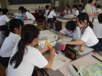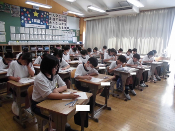 道徳の時間の様子です。この時間では、クラスメイトの良いところをかがやきカードに書き、渡し合う活動を行いました。この活動の中で、クラスの絆をさらに深めることができました。
