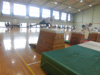 跳び箱教室の様子です。この時間では、体操教室の先生に跳び箱の跳び方を教えてもらいました。子供たちは教えてもらったことを意識しながら取り組み、これまでより上手に、高い跳び箱も跳べるようになりました。
