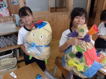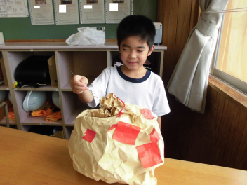 図工の時間に「くしゃくしゃぎゅ」という製作をしました。