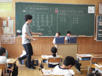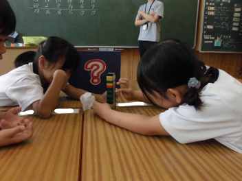 「どうしたらいいのかな?」「たし算をしたらいいんじゃない?」という考えが出てきました。