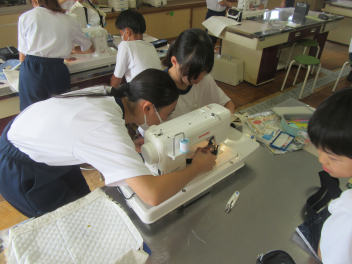 家庭科では裁縫の学習でトートバッグを作成しました。