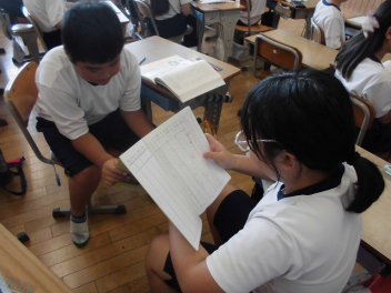 学活の授業の様子です。この時間ではクラスで行うイベントを決めました。どうすれば全員が楽しめるのか考えながら話し合うことができました。