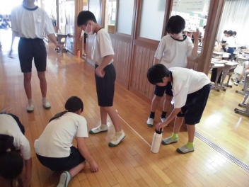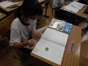 算数では、平均を求める考え方を生かして、自分の歩幅を調べることに挑戦しました。友達と協力しながら、1人1人が楽しく調べることができました平均では、計算ミスなくたし算やわり算をすることも大切です。ねばり強く頑張っています