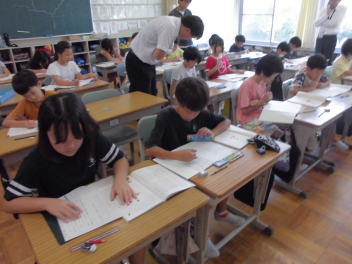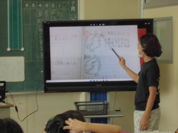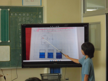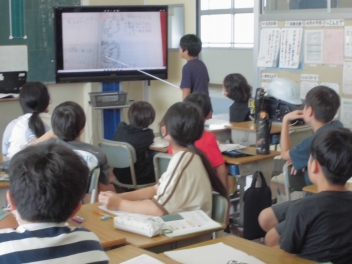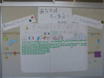 • 夏休みが明けた9月初旬、掲示委員会の5・6年生が掲示板を使って調査をしていました。