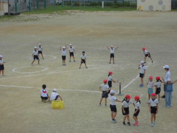 守るチームは、ボールを拾って円に全員が集まったらアウトにできます。