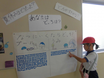 ★北校舎の4~6年生用には、「夏休みは家でゴロゴロするか、友達と遊ぶか?」
