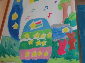 「ふしぎな たまご」では、たまごを割ったら出てくるものを想像して絵を描きました。
