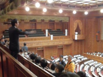 1日目 最初に国会議事堂を見学しました。衆議院の重厚感ある建物の内部には、大理石や赤い絨毯などがありました。