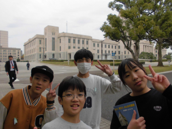 御休所や議場などをゆっくり見ることができました。忙しい中、地元出身の大臣が声をかけてくれたので子供たちは大喜び。