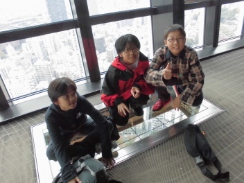 途中ガラス張りの床があったので恐る恐るのった子も・・・devil