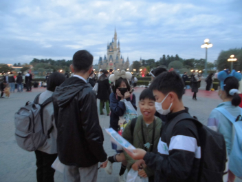 夜になるとイルミネーションがとてもきれいで、まさに「夢の国」協力して活動し、集合時刻を守ることができた子供たち。