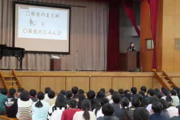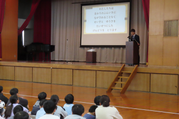 はじめに、代表児童が2学期をふりかえって発表しました。学習や係活動、自分から行動したことや挑戦したことなどをステージ上から堂々と伝えることができました。