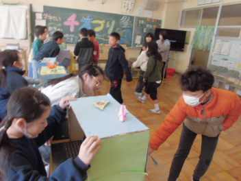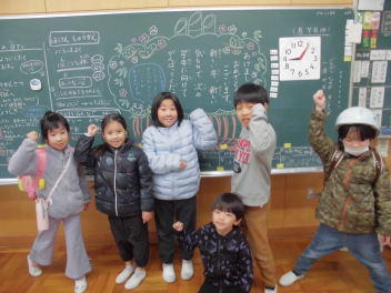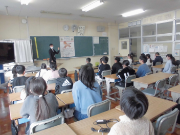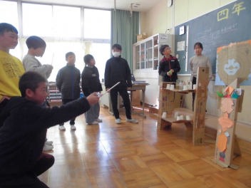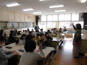 」を披露すると、大きな拍手がわきました。冬休みには、このような昔の遊びに親しんだり、学校で学んだことを生かしたりして生活してほしいと締めくくりました。