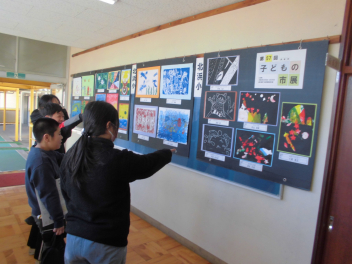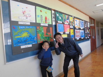 各学年の図画工作科のテーマにより、代表に選ばれた子供の絵画や版画などが展示してあります。