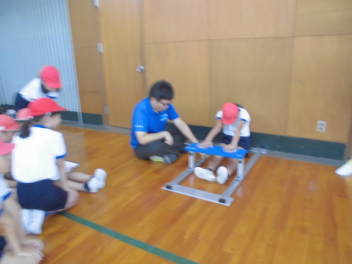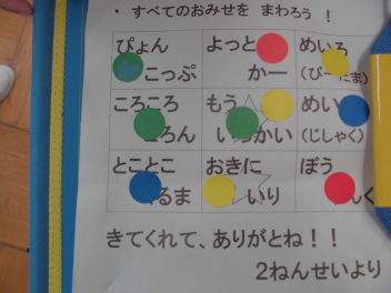 1年生は、動くおもちゃでレースをしたり、高く飛ばしたりしてとっても楽しそう。2年生から優しく声をかけてもらったり、ハンコや参加賞をもらったりして大喜びでしたfrown
