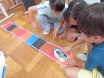 2年生は生活科「うごくうごく わたしのおもちゃ」の活動のまとめとして、1年生を招待して「おもちゃランド」で遊んでもらいました。