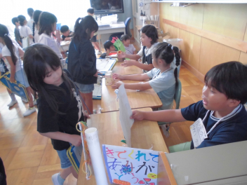 5・6年生の運動委員が説明したり、スタンプを押したりして活躍しました。多くの子供が楽しみながら参加し、体力アップにつなげることができました