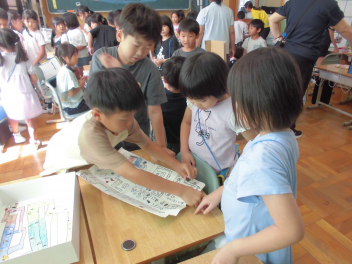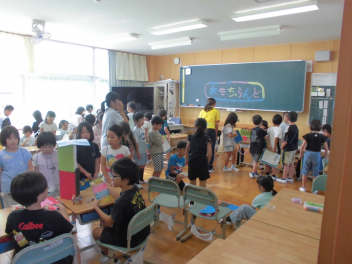 各クラスには、工夫したおもちゃコーナーがたくさんできています。2年生は1年生に喜んでもらおうと準備を重ねてきました。練習の成果もあって、遊びのルールや説明をわかりやすくしていました