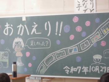 退所式では所長より、たくさんおほめの言葉をいただきました。それも子供たちがよく考えて自主的に行動したからこそと思います。その後、所員の方が温かく見送ってくださると、「さようなら~」「ありがとうございました!」とお礼を伝えた子供たち。足取りも軽く坂をおり、バスで学校へ戻りました。6年生が「おかえり!」と労ってくれました。優しい気持ちが表れていましたlaugh