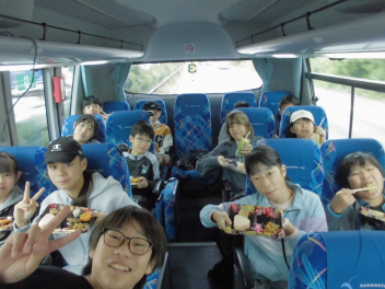 バスの中では各クラス、楽しいレクリエーションで盛り上がったり、きれいな富士山を眺めたり・・・。