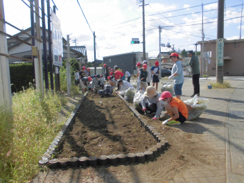 みんなで力を合わせて整地し、すっかりきれいになりました。今後は、花の苗を植えていく予定です!