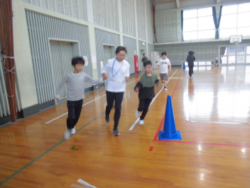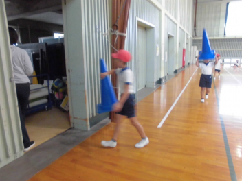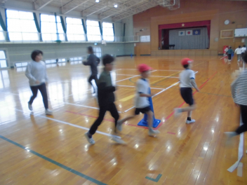 軽快な曲に合わせ、自分のペースで走ります。終了したら、片付けも自分たちで行っていたので感心しました。