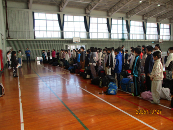 初日は、体育館にて出発式を行い代表児童が林間学校のめあてに向かって抱負を語りました。