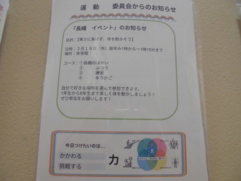 2月19日(木)昼休み、体育館で運動委員会がなわとびイベントを開催してくれました。