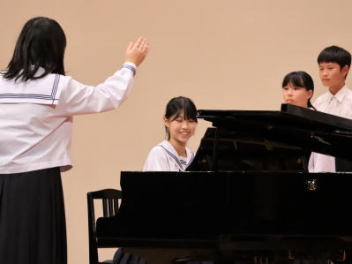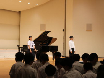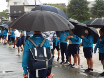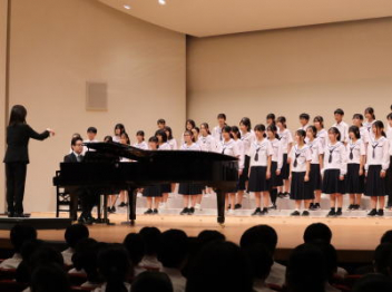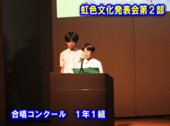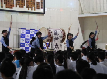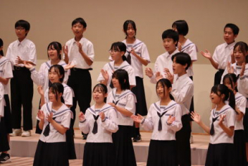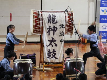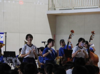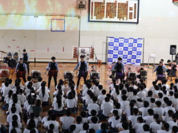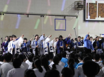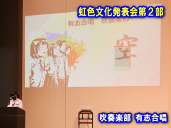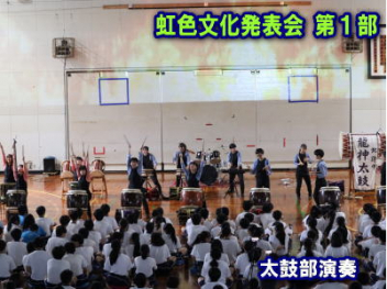 5・6時間目,体育館にて「虹色文化発表会 第1部」を行いました。第1部と第2部を2日間で実施するのは本年度が初めてです。会場も,第1部は学校の体育館で行うのも初めてです。昼休みが終わると生徒たちは体育館に集合して,第1部が始まりました。第1部は,「有志発表」「英語スピーチ」「太鼓部演奏」「吹奏楽部演奏」で構成されています。今日はすこしだけその様子を紹介します。明日は,浜北文化センターで第2部を予定しています。