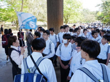 野外活動での炊飯活動も2時間ほど過ぎるとカレーライスが出来上がり,それぞれの班で「いただきます」をしています。スローガン通り,「仲間と描く特別な思い出」になったことと思います。「火をつけるとき」「ジャガイモを切るとき」「一口目を口に入れたとき」など,「この瞬間を心に刻んだ」ことと思います。