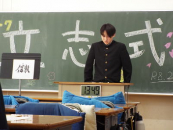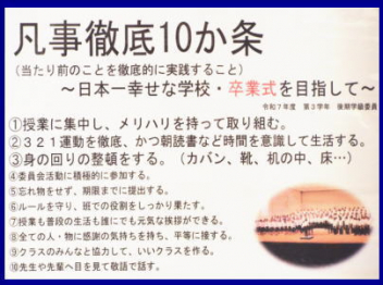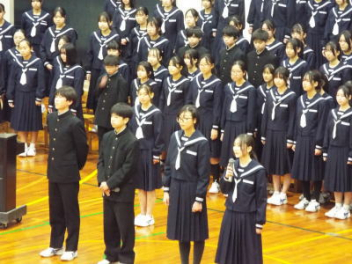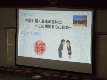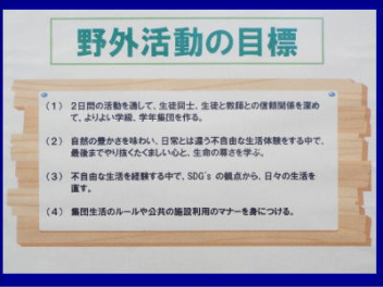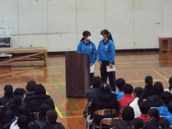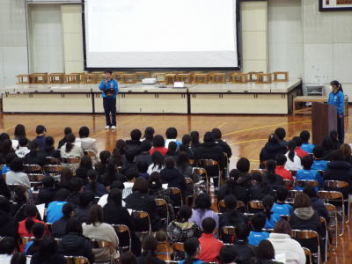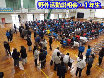 5時間目,体育館にて1年生の「野外活動説明会」を行いました。本年度の野外活動は,4/16(木)4/17(金)の1泊2日で予定されています。活動場所は愛知県の美浜自然の家です。スローガンは「仲間と描く,特別な思い出 ~この瞬間を,心に刻め~」です。地引網体験やキャンドルセレモニー,炊飯活動などの体験を予定しているようです。生徒たちは,第2期から実行委員を中心に計画を進めています。調べ学習も進んでいて,自分たちの浜松市と美浜町との違いを少しずつ分かってきました。今日は,保護者の方に説明会への参加を依頼して,2日間の詳しい日程や準備物などについて説明をしました。御家庭には多くの御協力をいただくことになりますが,よろしくお願いします。