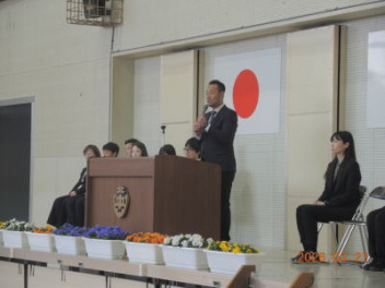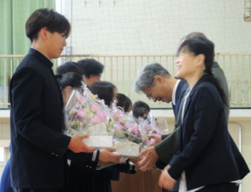 今日は離任式です。この年度末で15人の職員が転退職されます。多くの生徒たちが通常登校で体育館に集合して定刻通りに式が始まりました。式の中では,生徒代表による「送別の言葉」が贈られました。転退職職員も集まった生徒たちも,それぞれの思いを胸にして式が終わりました。集まってくれた生徒たちに感謝です。