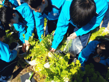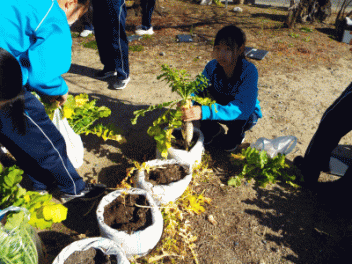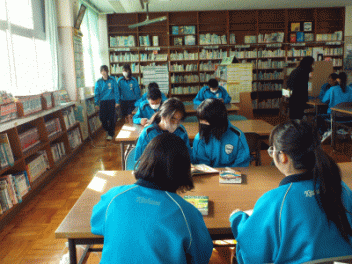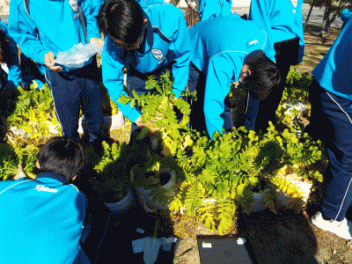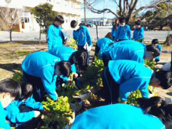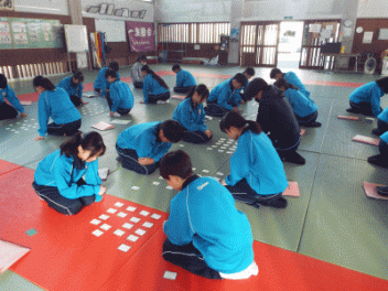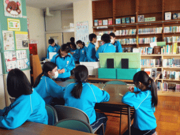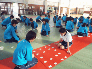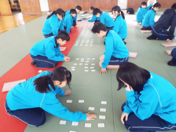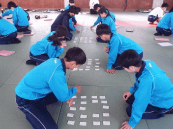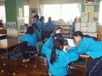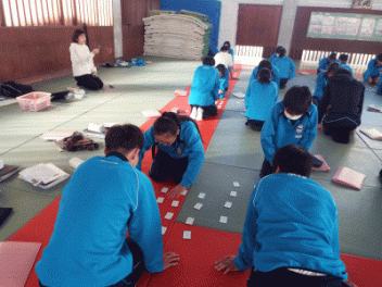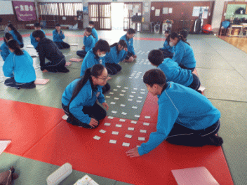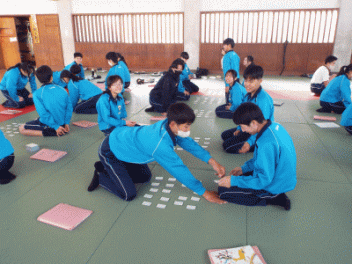 2時間目,3年生の教室から歓声が聞こえます。社会科の経済の学習で「景気七転び八起きすごろく」に取り組んでいます。このすごろくには「好景気編」と「不景気編」の2種類があるようです。サイコロを振ると「自社商品の開発に成功し売り上げ上昇,+10,000円(好景気編)」とか,「銀行からの融資がストップ 金利返済のためボーナスカット 偶数は-20,000円(不景気編)」などとマス目に記載されていて,生徒たちはサイコロの目の数を見て一喜一憂しています。生徒の手元には「収入・支出額」「給料増減額」などを記録するワークシ-トがあり,サイコロを振るたびに記入しています。最後に累計額を比べて勝ち負けを決めています。楽しく経済の言葉を学んでいます。
