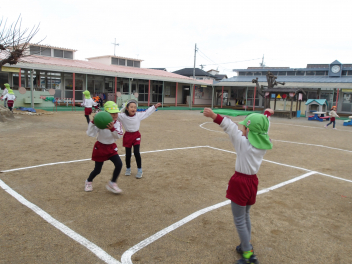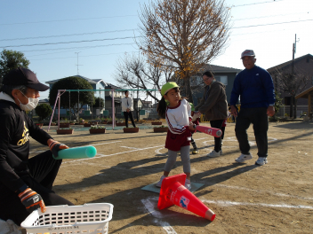 普段の遊びでは、なかなかやる機会がないソフトボール。今日は投げ方、打ち方などを教わり、とても楽しそうな年中・年長のこどもたちでしたsad