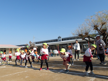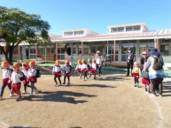 幼稚園では万が一に備え、いろいろな想定で避難訓練をしています。日頃から、「自分の身を守る」という意識をもつことはとても大切ですね。