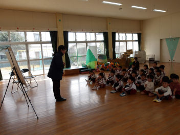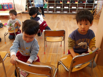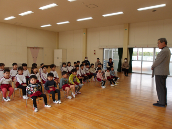 始業式では、園歌や十二支の歌を歌ったり、3学期どんなことがあるかなどのお話を聞いたりしました。園長先生からは3学期は「ひとつ大きくなる準備の時期です」というお話があり、目を輝かせて聞くこどもたちでした