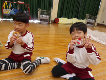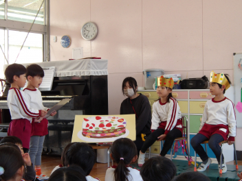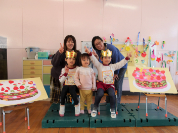 • 12月生まれの友達の誕生会がありました司会の年長さんが飾りつけをしてくれた部屋でお祝いをしました。司会の年長さんがインタビューをしたり、おうちの方からの素敵なメッセージをもらったりしましたlaugh
