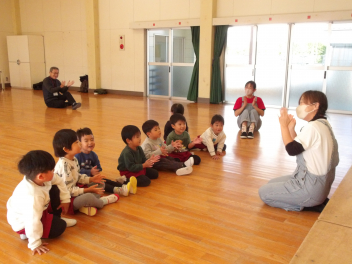 始めの時間帯は年少うさぎ組さんの音楽遊び教室ですsad