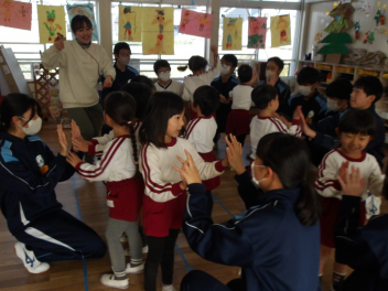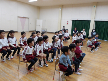 次は年中・年長さんです。体をこすって温める動きからスタートしました