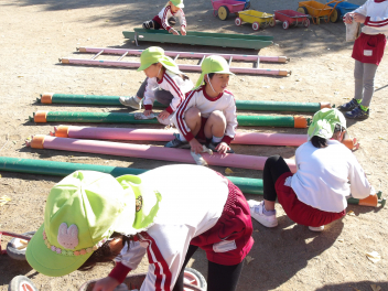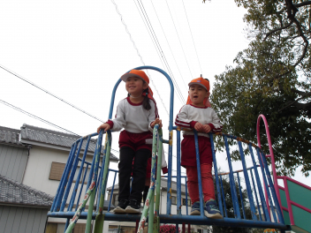 年長めろん組さんたちは、一緒に走ったり、遊具で遊んだり。
