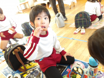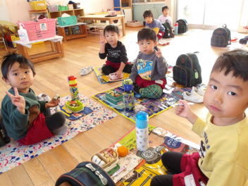 今日は2学期最後のお弁当の日です。こどもたちは、おうちの方が作ってくれたお弁当をいつも以上においしそうに食べていました。