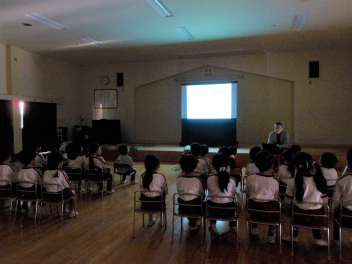 真剣にお話を聞くこどもたち。あってはならないことですが、万が一を想定して心構えをしておくことは必要ですね。