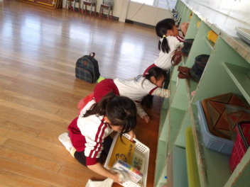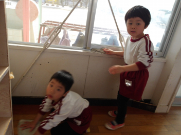 終業式が終わり各保育室に戻ると、どのクラスもこどもたちが雑巾をもって大掃除をしていました。
