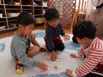 室内でカードゲームをして遊ぶ姿もありました。先生や友達と一緒に遊ぶことが嬉しそうですsad