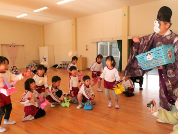 • 今日は節分の日です。幼稚園でも豆まき会がありました。