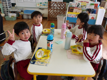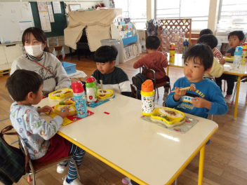 次に園長先生とのランチタイムを過ごすめろん組さん、お楽しみにfrown