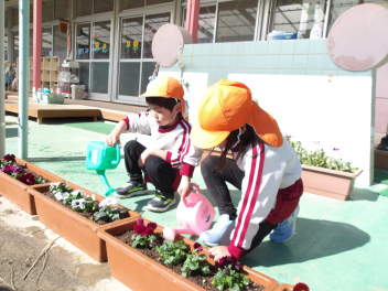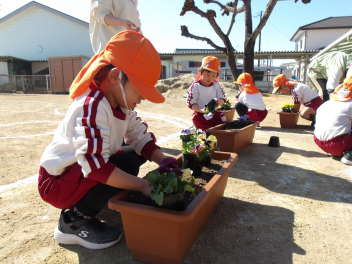 地域のボランティアの方とひまわり組さんが手際よく、苗を植えてくれました